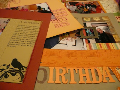 The first thing I did was pick out pictures from December that I wanted to print and share. I uploaded them to Walmart and printed them. I then divided them into occasions ( I have many occasions for December) and topics. Then I placed them all in the 12X12 pages that had 4X6 pockets. Once they were in order, I took a post it note and decided what LO's I wanted to do. As I started a layout, I either used the 4x6 pictures I had or I printed them on my own printer at the desired size. Once the layout is complete, I place it in a 12x12 protector in the general area of the 4x6 pockets that are also about that event. It probably sounds confusing but it works for me. I have already completed 7 layouts and 3 cards for 2009. This is far above what I did last year by this time.